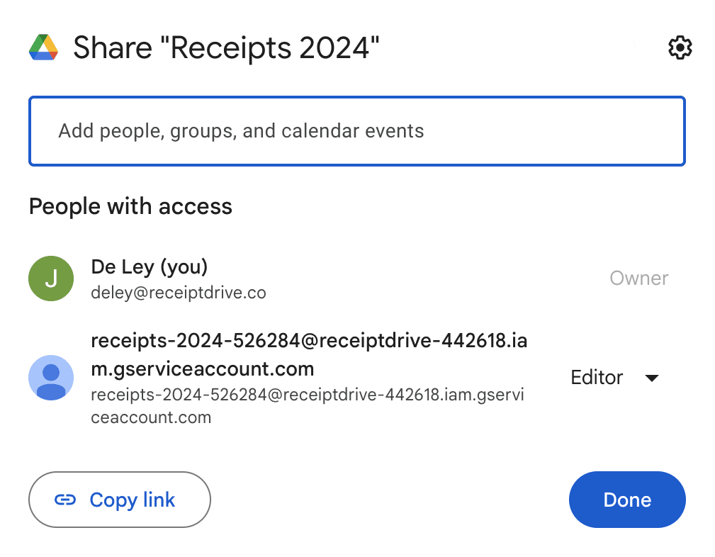 ReceiptDrive lataa Google Driveen kaikki sähköpostin liitetiedostot, jotka bottisi vastaanottaa. Lopeta tunteja kestävä kuittisirkus ja tee kirjanpidostasi helpompaa.